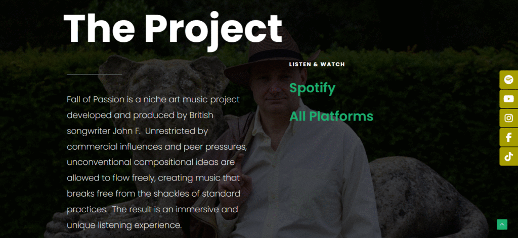 Fall Of Passion is an independent music project led by British songwriter John F. The debut track, “Never Gonna Let You Go,” combines acoustic, orchestral, and modern production elements to create a cinematic soundscape. To showcase the project, a dedicated website was launched as the central hub for music streaming, news, lyrics, and video content. However, the site struggled to capture the project’s emotional depth and provide an engaging experience for visitors. This case study examines the redesign of the Fall Of Passion website, focusing on its structure, design, functionality, and user experience, while highlighting the challenges faced and benefits achieved through the transformation.