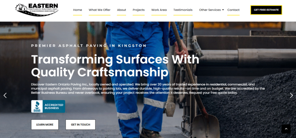 Eastern Ontario Paving Inc. is a trusted leader in asphalt paving for residential, commercial, and municipal clients in Kingston and surrounding areas. The company, known for its top-quality craftsmanship and extensive experience, needed a complete website redesign to address numerous issues present in their old site.